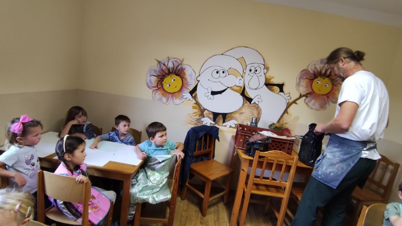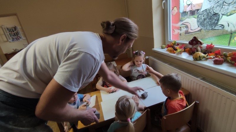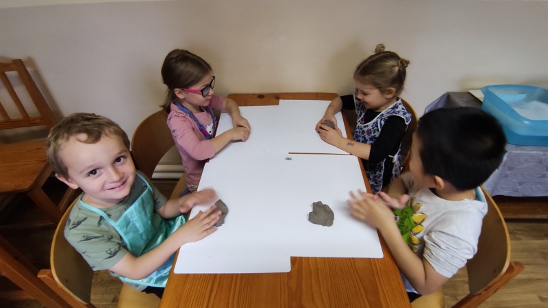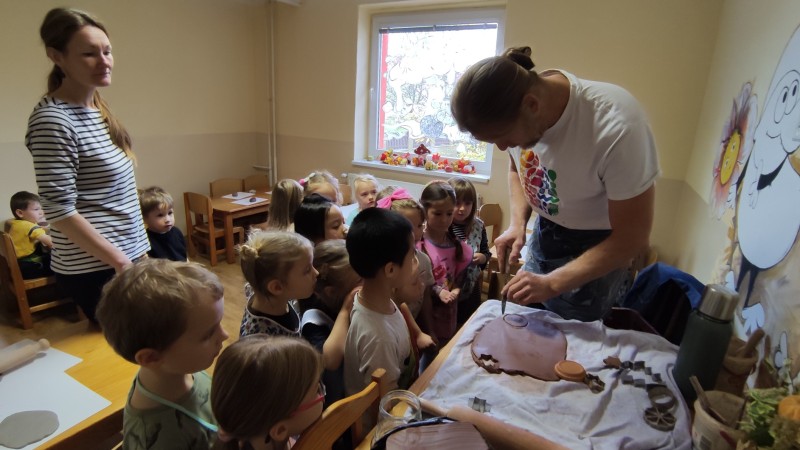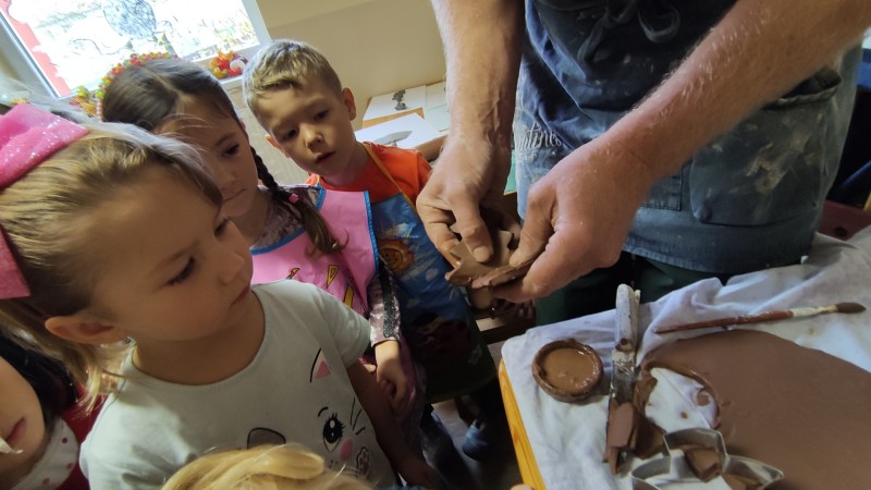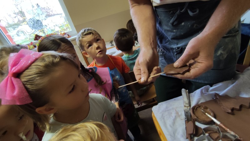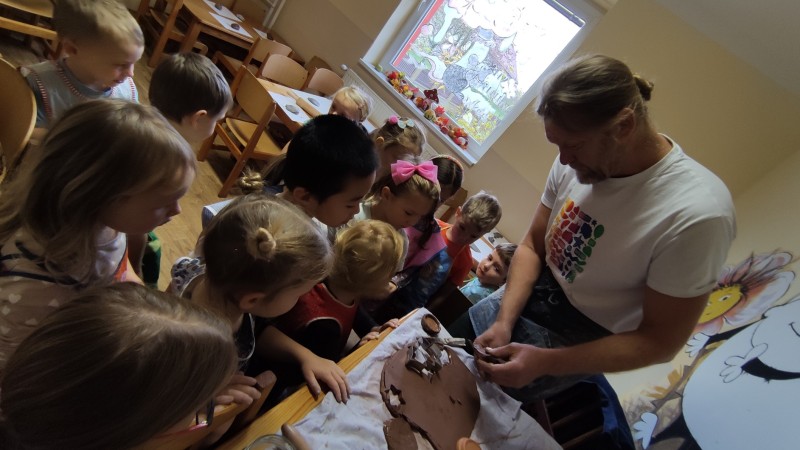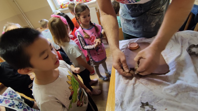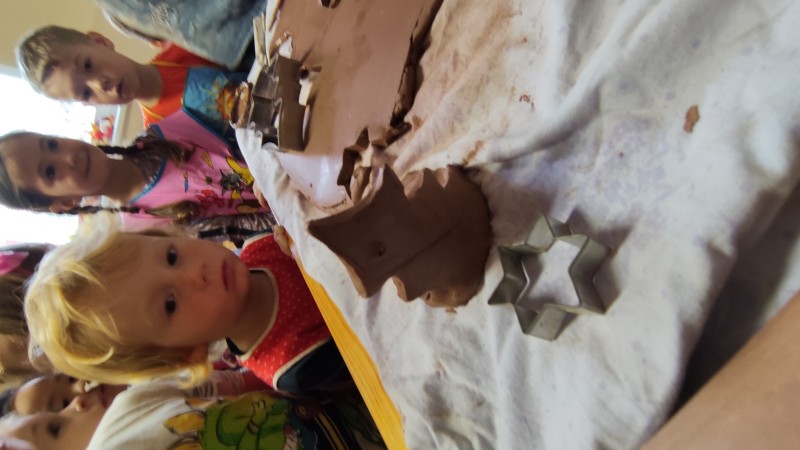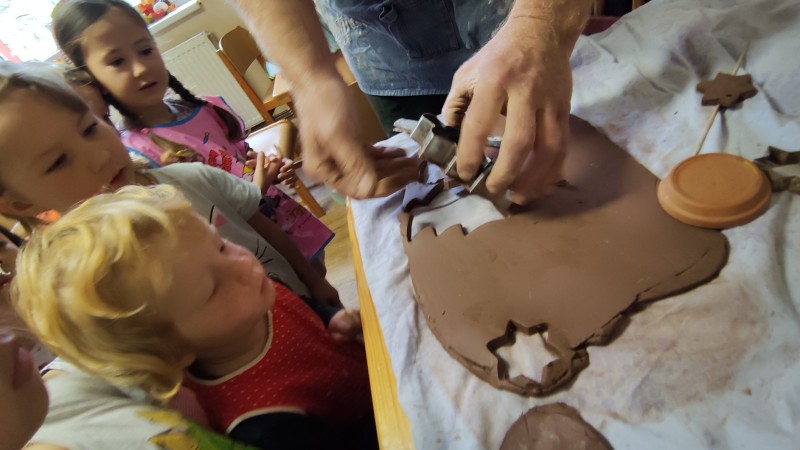 S panem Valentou si děti užívaly tvoření z keramické hlíny. Tvořily pro své rodiče a příbuzné výrobky z vlastní představivosti, také ozdoby pomocí vykrajovátek a svícen ve tvaru stromečku. Seznámily se s druhy hlíny, její zpracování, vypalování, dekorování. Děti si vyzkoušely hnětení, tvarování, lepení dílů, jak používat hrnčířské pomůcky –  lanka, špachtle, látky. Děti zapojily senzorické vnímání do celkového svého projevu a zpracování. Vytvořily úžasné výrobky a tvoření z hlíny je velice bavilo.