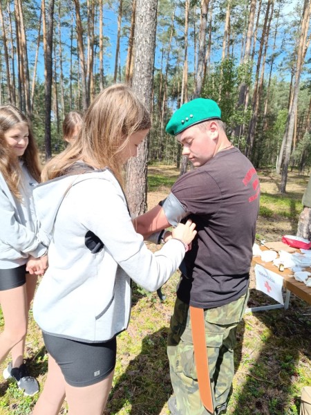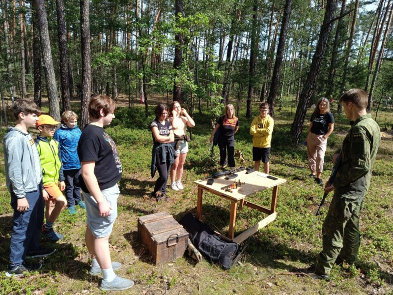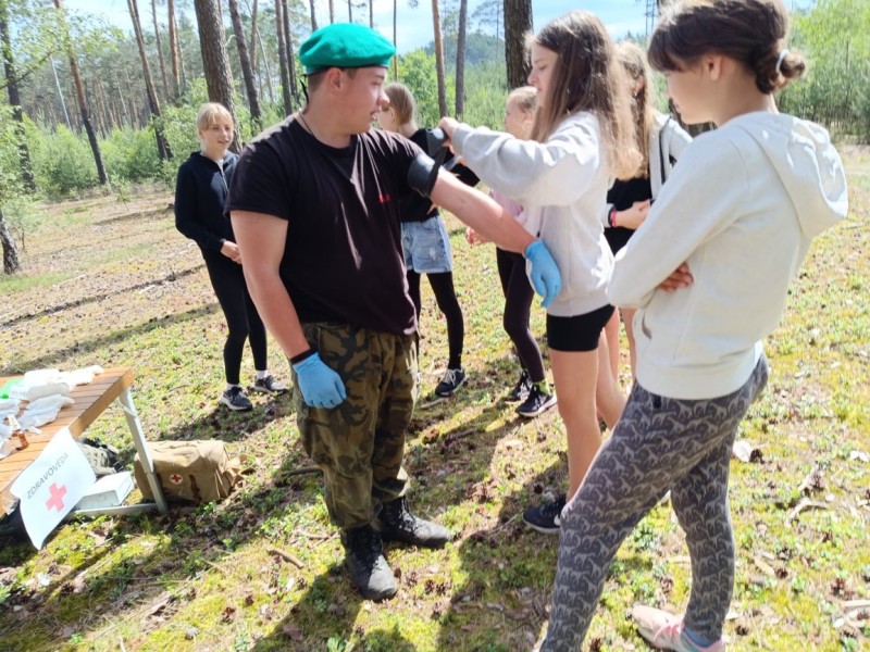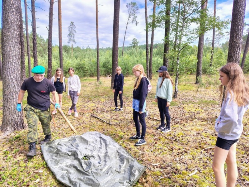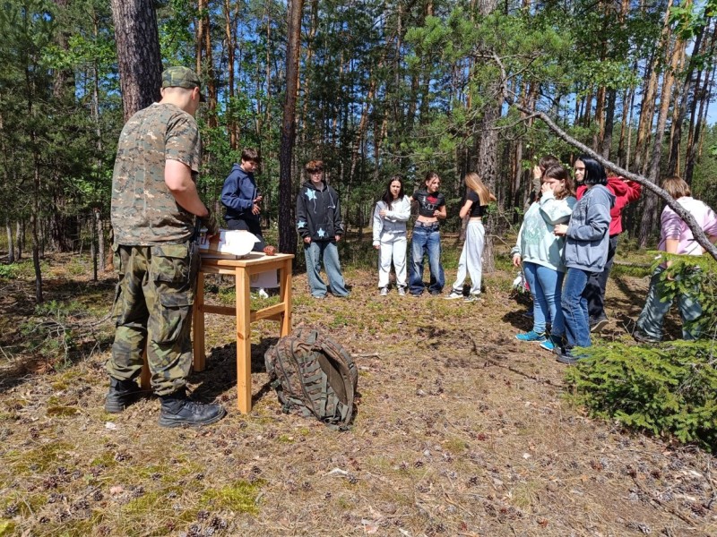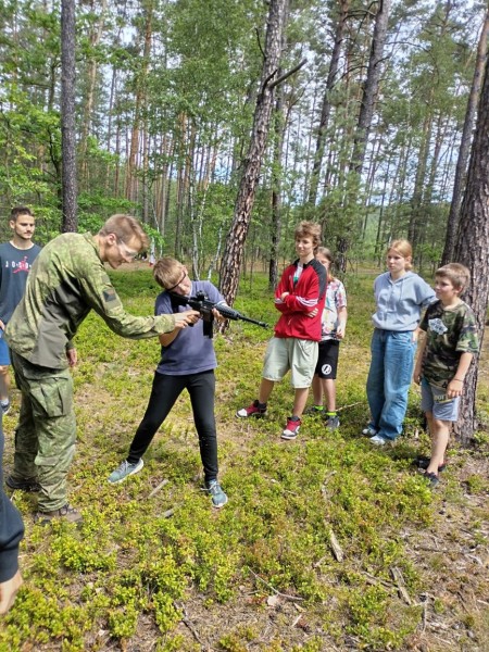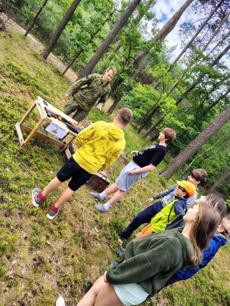 V pondělí 17. 6. se v přilehlém lese naší obce konal branný den pro žáky druhého stupně. Kluci a holky se střídali ve skupinkách mezi pěti stanovišti. Na jednom zkoumali vybavení a nástroje pro přežití a vyzkoušeli si překážkovou dráhu se zátěžovou vestou. Na dalším se učili základy sebeobrany a úderných zbraní. Dále pak poskytovali první pomoc a ošetřovali různé druhy zranění. Také dostali přednášku o funkci a použití granátů. A v neposlední řadě se na střelnici dozvěděli mnohé o nábojích a základech zacházení se střelnou zbraní. Vyzkoušeli si zde i střelbu na cíl z airsoftové pušky.