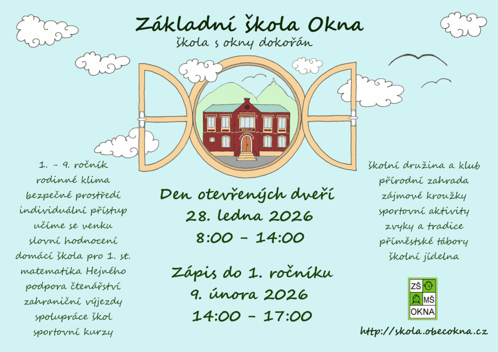 Už dopředu avizujeme, že v lednu proběhne v naší škole Den otevřených dveří a již na začátku února zápis do prvního ročníku.