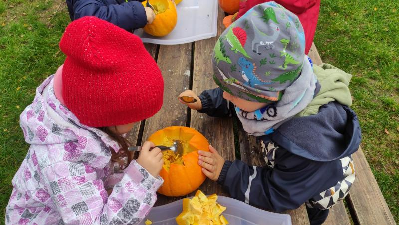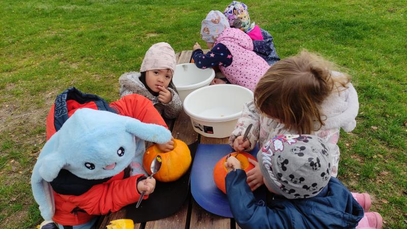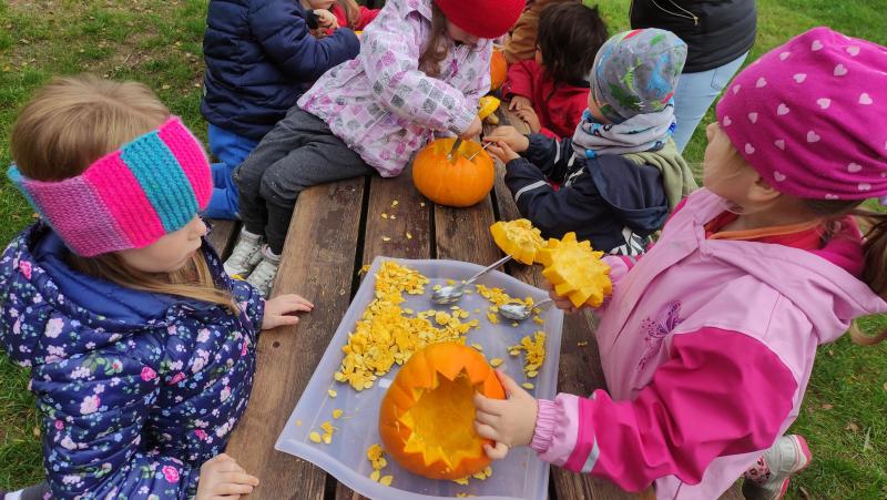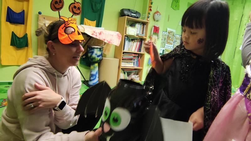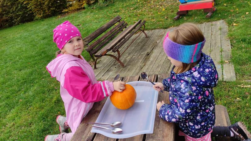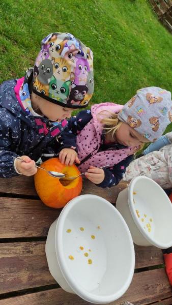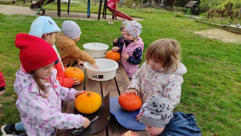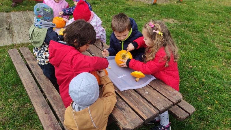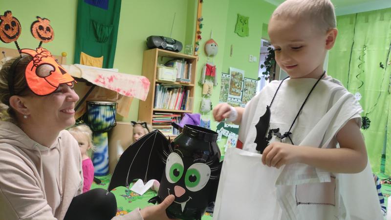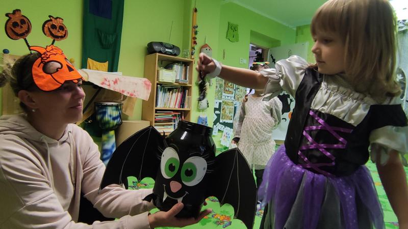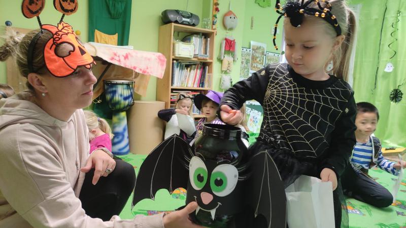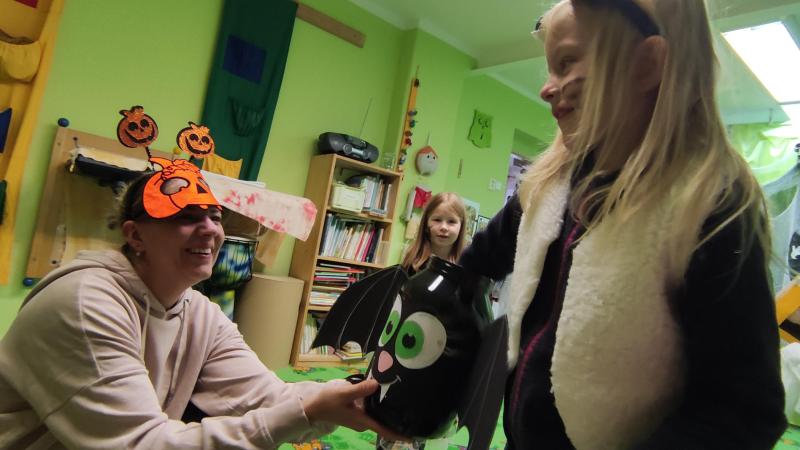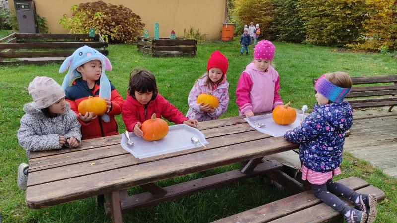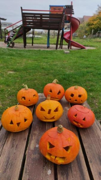 Happy Halloween! Děti převlečené v kostýmech se účastnily různých aktivit a her v daném duchu. Duchové nás provázeli v průběhu celého dopoledne – hod na cíl a horním obloukem, pyramidy z duchů, namotávání, chytání duchů apod. Také si děti zkusily rovnovážné cvičení, orientaci v prostoru, spolupráci ve skupině, převzetí různých rolí, dokončit činnost aj. Překonávaly své obavy a nejistoty z něčeho nového. Vše zvládly skvěle a s velikou chutí. Nadšeně předávaly nové zkušenosti a zážitky z aktivit svým rodičům. Za zvládnuté aktivity a kostýmy je čekalo ocenění a něco na zoubek :). Již se těší na slavení Památky zesnulých a návštěvu místního hřbitova, kde budeme čistit opuštěné hroby, zdobit je a zapalovat svíce.