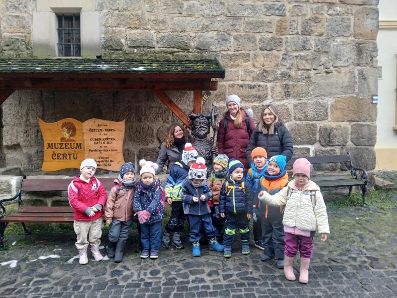 Hned první prosincové pondělí jsme spolu s dětmi z lesní školky navštívili Muzeum čertů v Úštěku. Po prohlídce muzea jsme vstoupili přímo do Pekla, kde jsme na váhách zjistili kolik gramů váží čistá duše a kolik duše zatěžkaná hříchy. Lucifer nás poučil, kdo patří do pekla. Děti si mohly prohlédnout čertovské hodiny, díky kterým můžeme třeba omládnout o 20 let. Nakonec jsme se všichni dostaly z Pekla v plném počtu zpátky mezi smrtelníky. A honem na vlak do okenských školek. Tak znovu za rok ;-)