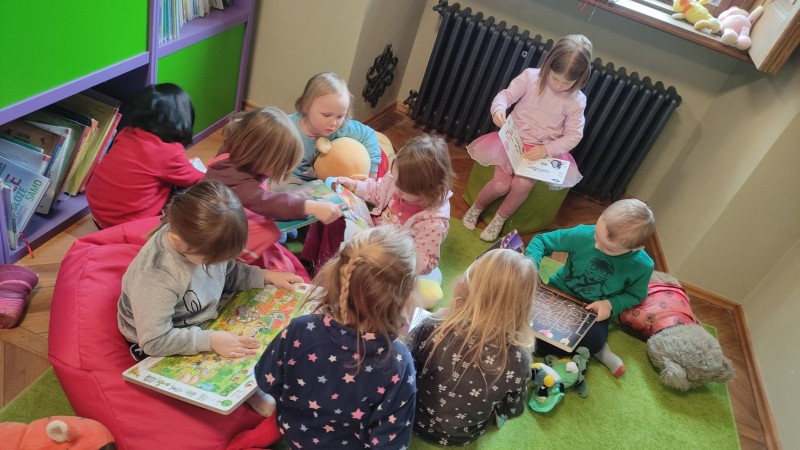 Letošní recitace straších i mladších dětí probíhala v první třídě základní školy. Děti krásně vyslovovaly své verše. Vybavily si říkanky a básně z paměti. Za krásný přednes byly oceněni. K tématu Moje oblíbená pohádková knížka se nám naskytla možnost návštěvy Městské knihovny v Doksech. Děti si mohly prohlížet knihy, časopisy a poslechly si příběh, který vedl k porozumění textu a hledala se v něm hlavní myšlenka. Také nechyběla dílnička, kde si děti vyrobily záložku do knihy. Tuto návštěvu jsme propojili s návštěvou Muzea Čtyřlístku, kde na děti čekala opět dílnička a prohlídka známých pohádkových postav a hrdinů v kresleném příběhu.